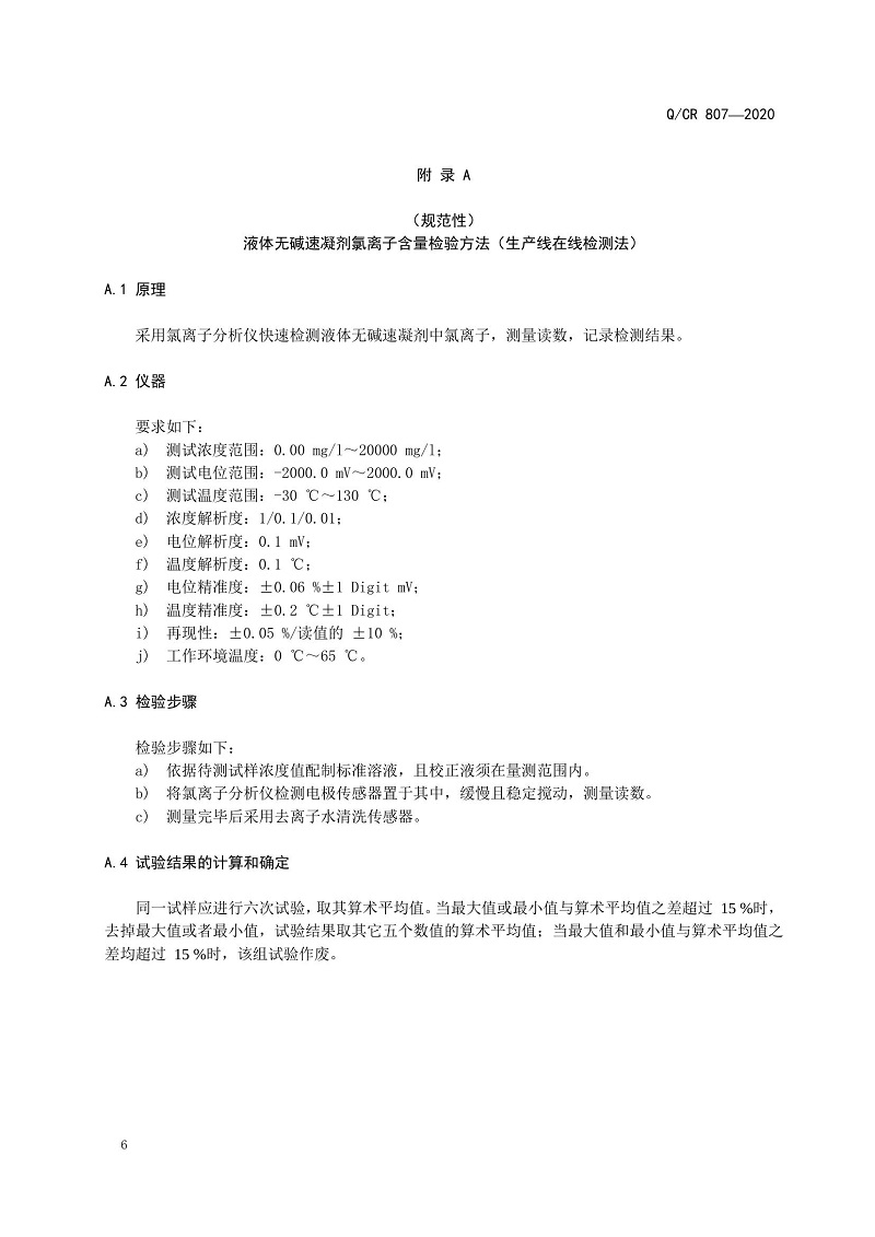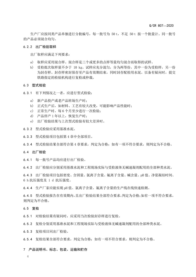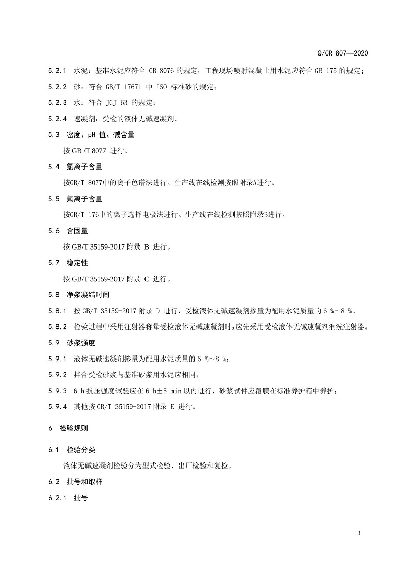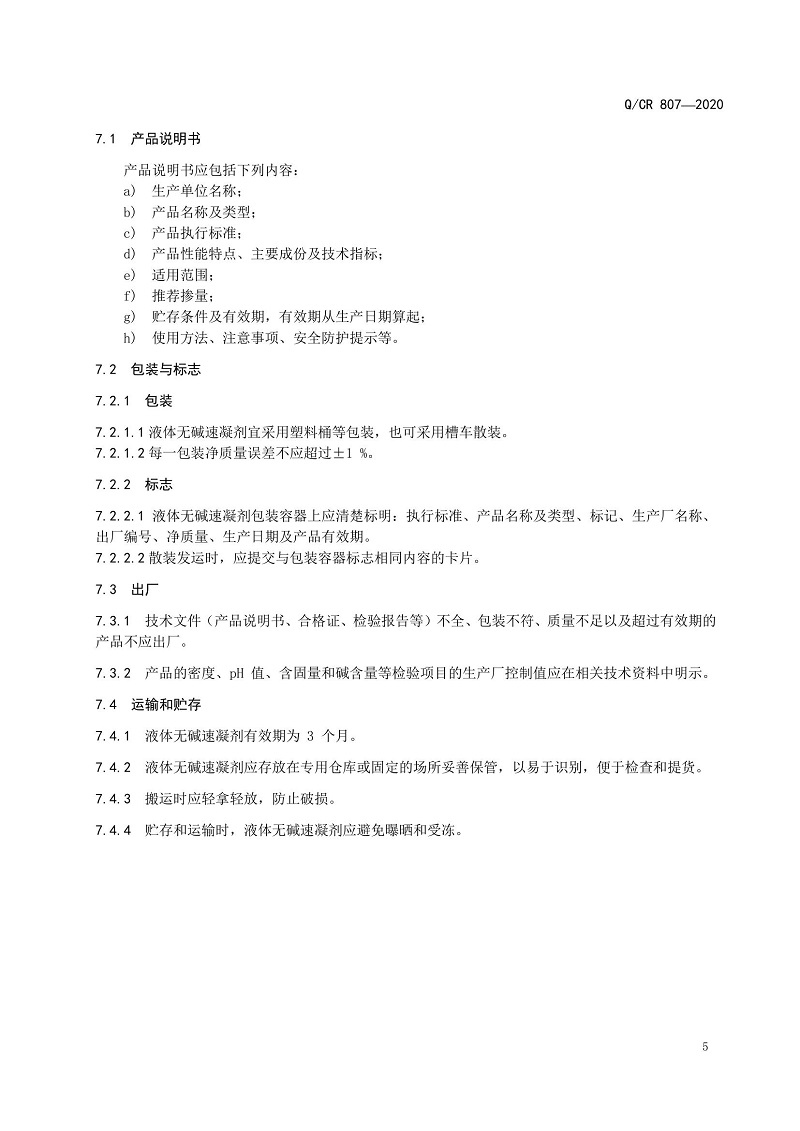 QCR 807-2020國鐵集團(tuán)技術(shù)標(biāo)準(zhǔn)《隧道噴射混凝土用液體無堿速凝劑》